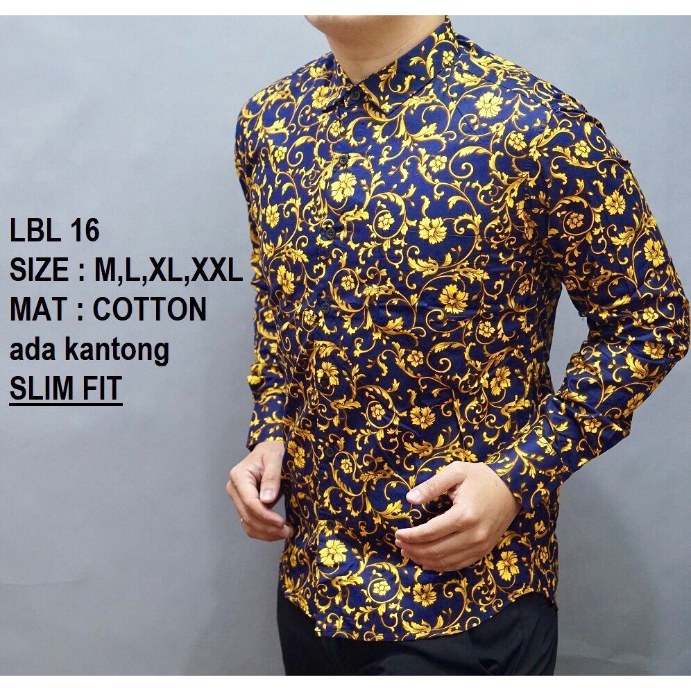 Jual premium Baju Batik Pria Slim Fit Lengan Panjang ...