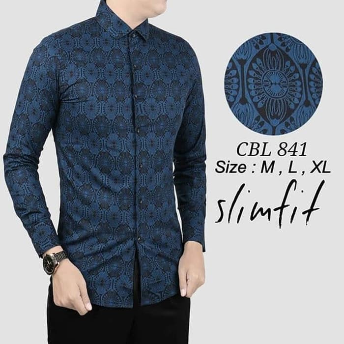 BAJU BATIK PRIA SLIM FIT LENGAN PANJANG BIRU NAVY BEST ...
